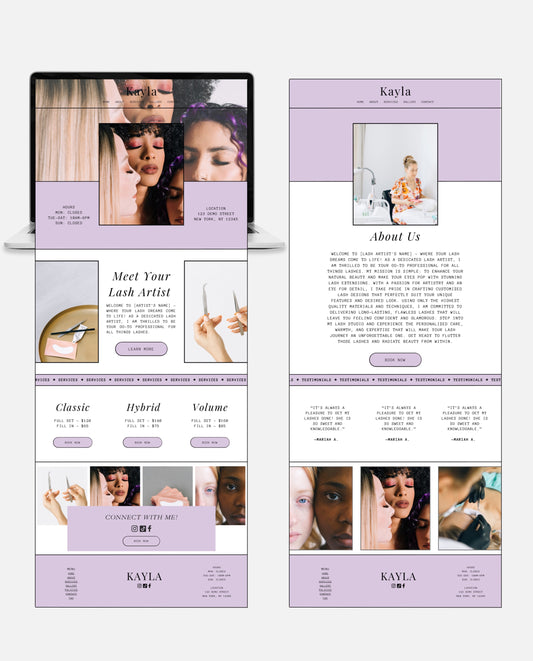 KAYLA | LILAC & BOHO WEBSITE TEMPLATE FOR LASH ARTISTS